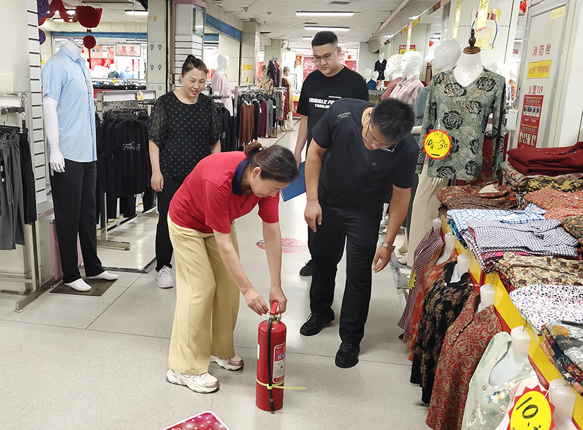 8月21日,安保部同事們對豐華針紡商場商戶及員工進行一對一消防安全培訓,重點對滅火器、消防軟管卷盤及手報按鈕進行實操講解。